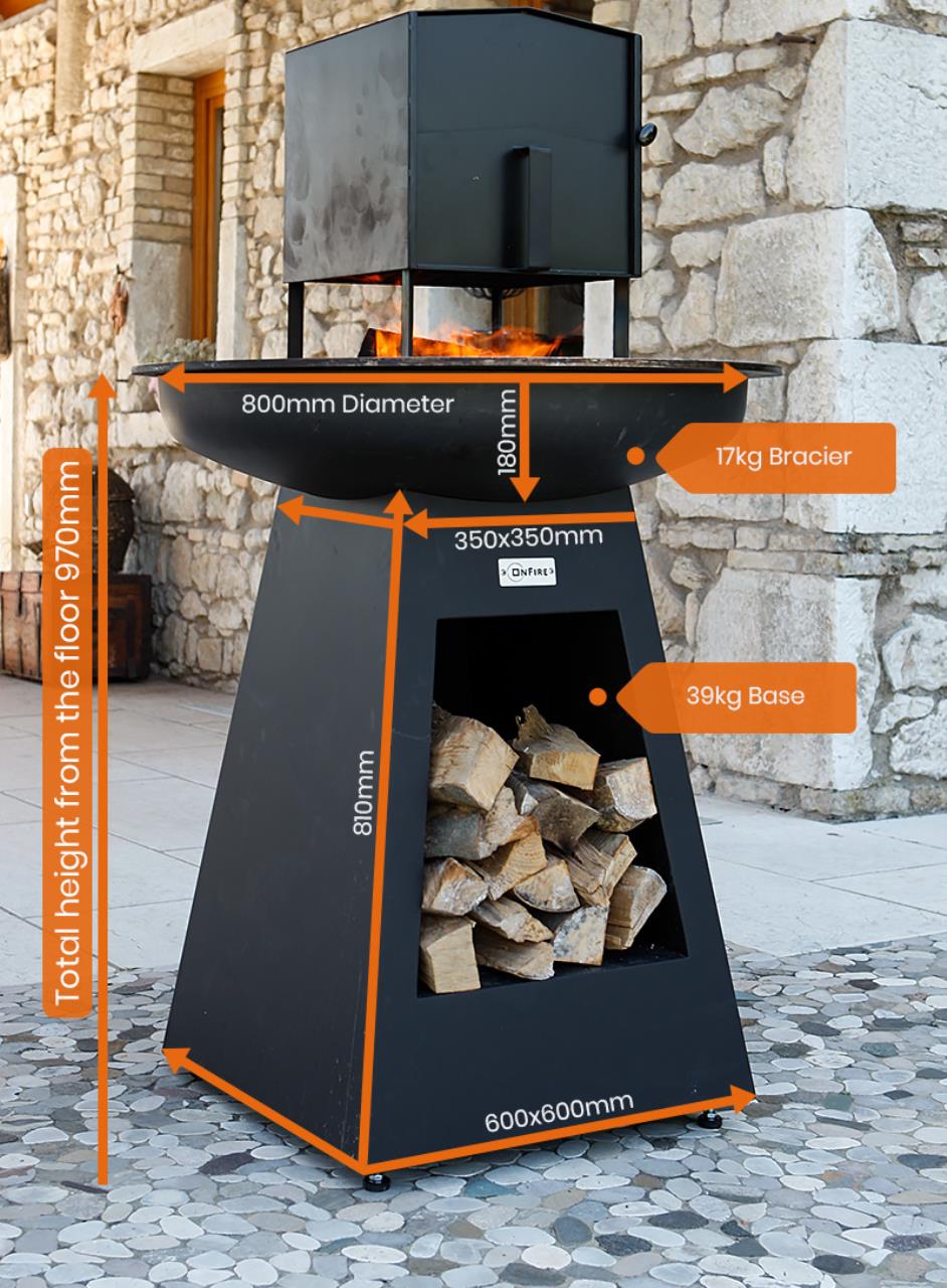 OnFire BBQ Höhe 100 cm, Schwarz, mit Holzfach